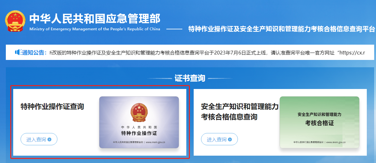 应急管理部政府网站,具体网址为:http://cx.mem.gov.cn/。